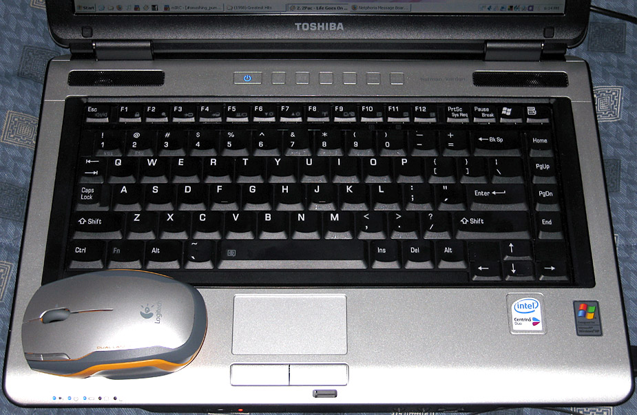 My older Satellite (this is way old, 5105 series) has the exact same keyboard layout as my dad's Qosmio, which is quite strange. You'd think Toshiba would change the layout of the keyboards over a period of about 4 years.
