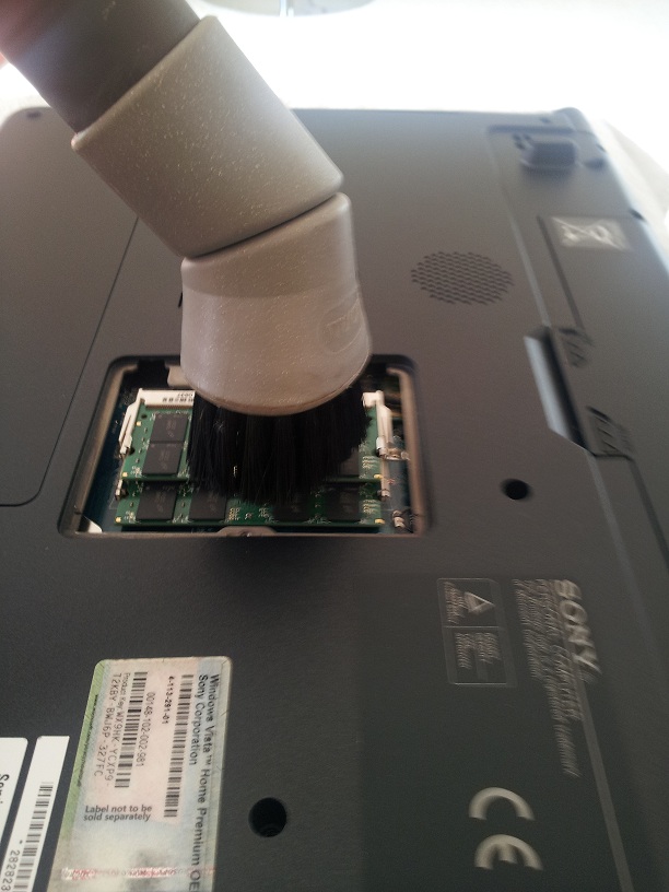 OMG. You sir made me laugh so hard. These pics are epic, that hoover over the RAM sticks, oh man. I just hope, really hope no one will ever follow your advice regarding cleaning up the laptops.