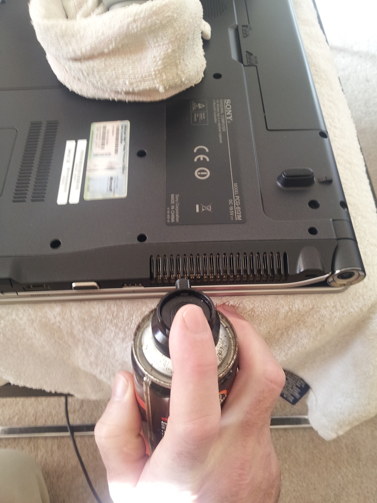 All good and well if you have the experience to take your laptop apart but if you dont then you can cause alot of damage. with compressed air you will do no damage to the fan at all and i think it should be the first port of call for the guy rather than to spend large amounts of money on a dissasembly.