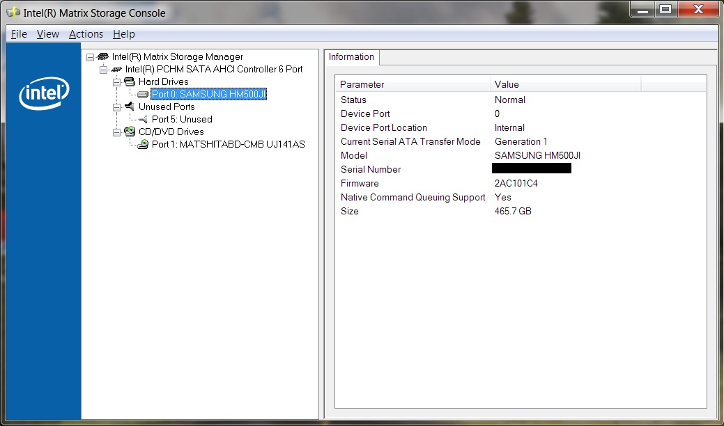 Can anyone tell me what SATA version is reported in their Intel Matrix Storage tool? Mine is telling me it is running generation 1 SATA which is SATA 150. I have the Hitachi 500Gb 7200rpm drive which is SATA 300. Is there a way to change it to SATA 300?
