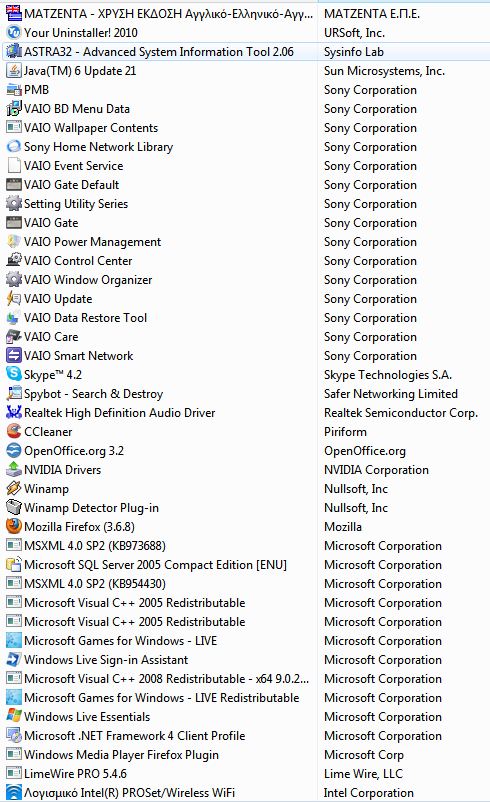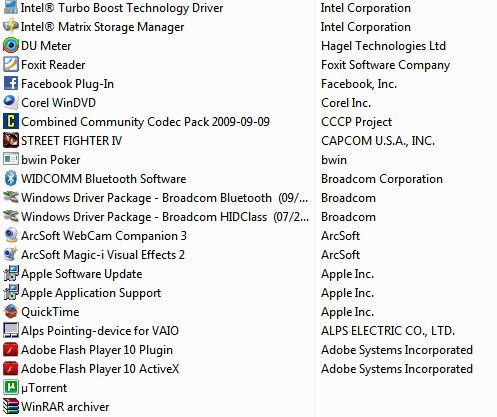 Could you post a screen capture of all the Vaio_software (including version #) seen in your Control Panel > Programs like I did for my F11_OEM state to show before vs. after clean install with OEM recovery discs? Tip: use the Snipping Tool and sort by Publisher.