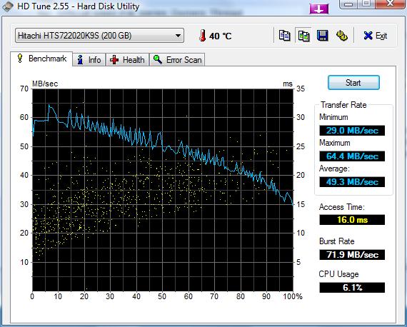 That's not bad at all particularly if that's after running HDTune test. The Hitachi 7K200 runs 48 C after HDTune. My new Hitachi 7K320 (7200) stays around 39 C when idling and 43 C when defragging in the background.