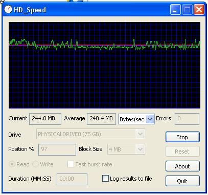 Published specs are 250MB read and 70MB write. Didn''t test write performance as this utility said it would destroy all data on the drive...Attached Files: