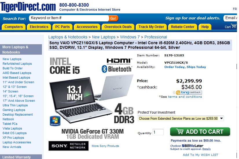 btw, Tigerdirect has 15% bing cashback right now, if you dont mind getting the vpcz116gx/s (i5-520m/256 gb ssd) <-- pic of Vaio + bing cashback belowAttached Files: