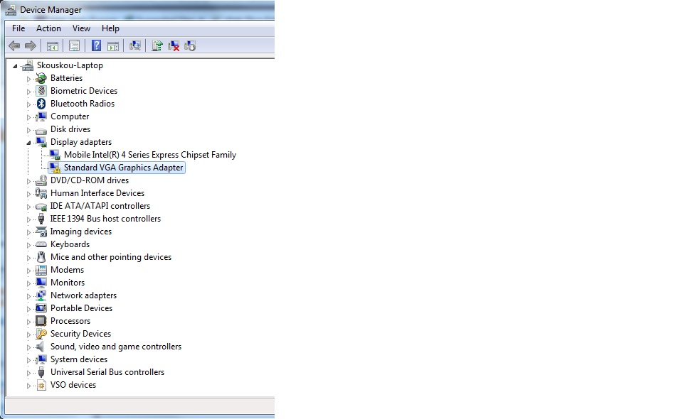 You can see at the attached jpeg, a screenshot from the Device Manager , where the only device NOT recognized is a Standard VGA Graphic Adapter. (It is the same no matter if I move the selector at any direction)