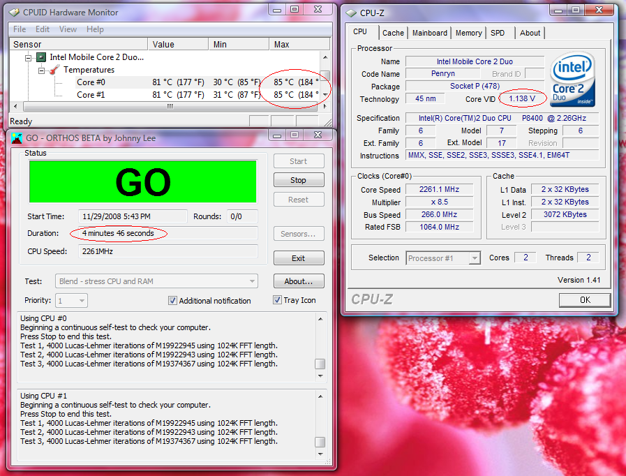 Following is the temp of CPU before using RMClock to make undervolting. the temp can reach to 85c.