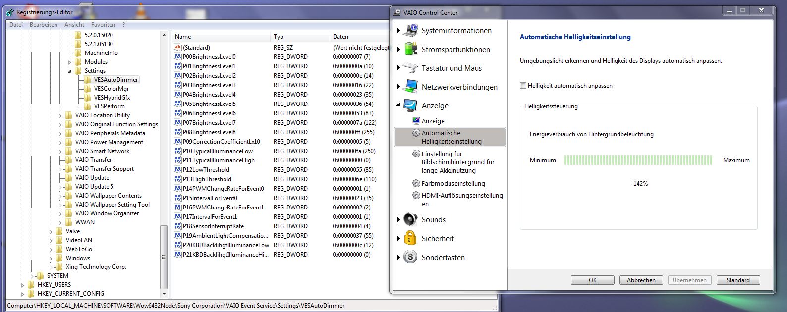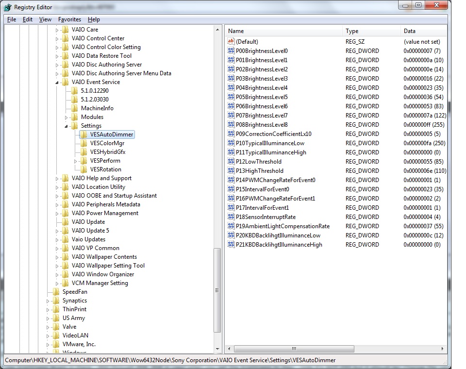 HKLM\Software\Wow6432Node\Sony Corporation\Vaio Event Service\Settings\VESAutoDimmer