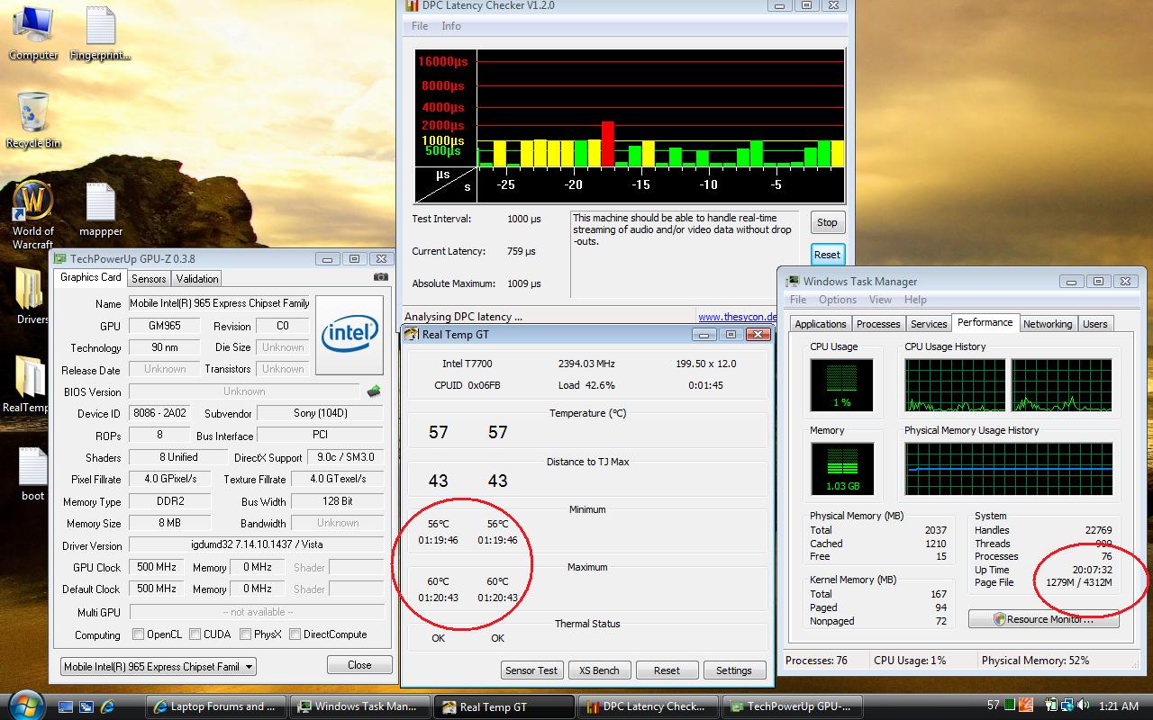 I have attach a print screen with task manager, realtempGT, GPU-Z and DPC latency, after running WoW till it crash