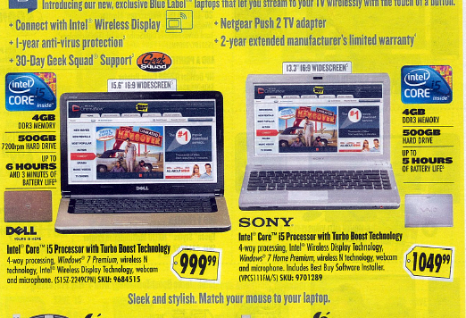 NewYorker007 at slickdeals posted this weekends best buy ad. It has the dell and sony s laptops.