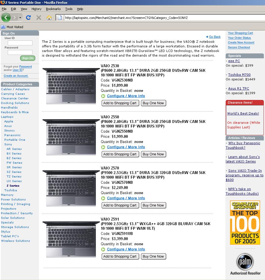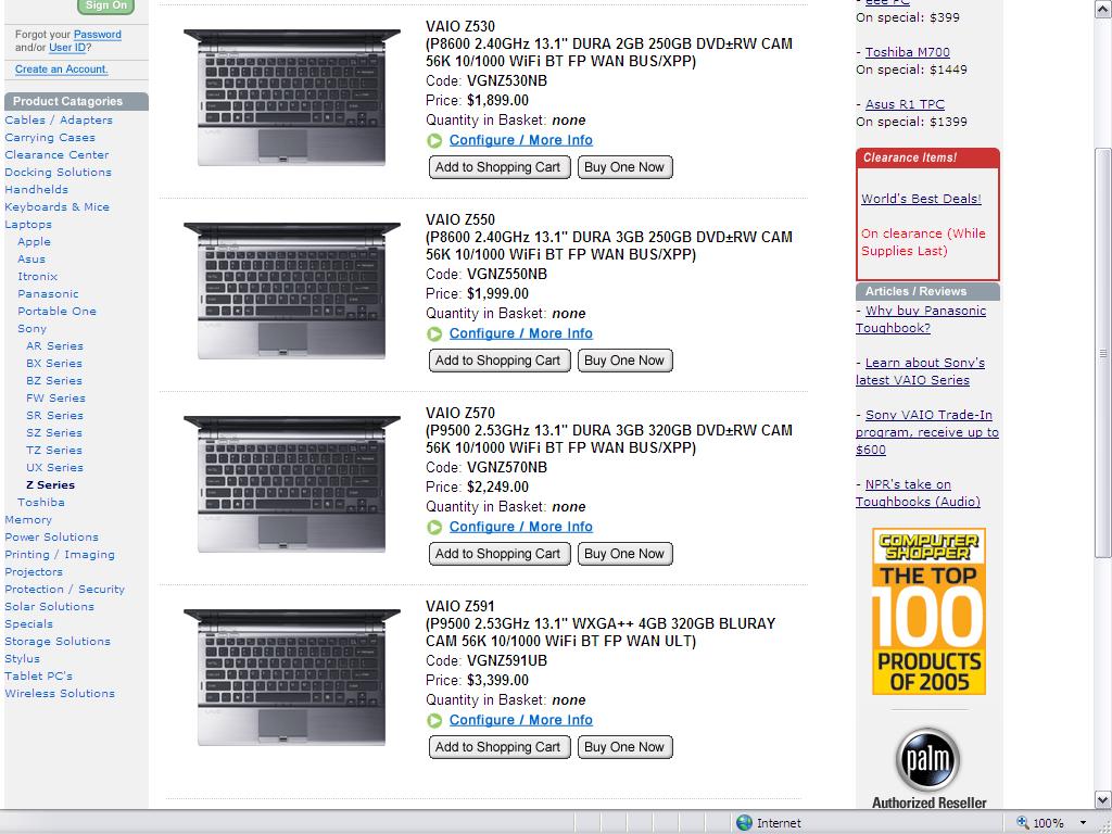 New Vaio 2008 model listing with indication prices - FW - Z - SR - BZ
