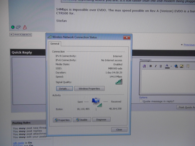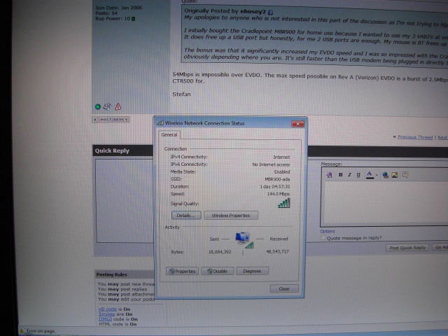 So while the actual speeds with EVDO over wi-fi are going to be questioned, I know for a FACT that using the Cradlepoint SIGNIFICANTLY speeds up the 3.1Mbps EVDO signal compared to just plugging the USB modem directly into the computer. -