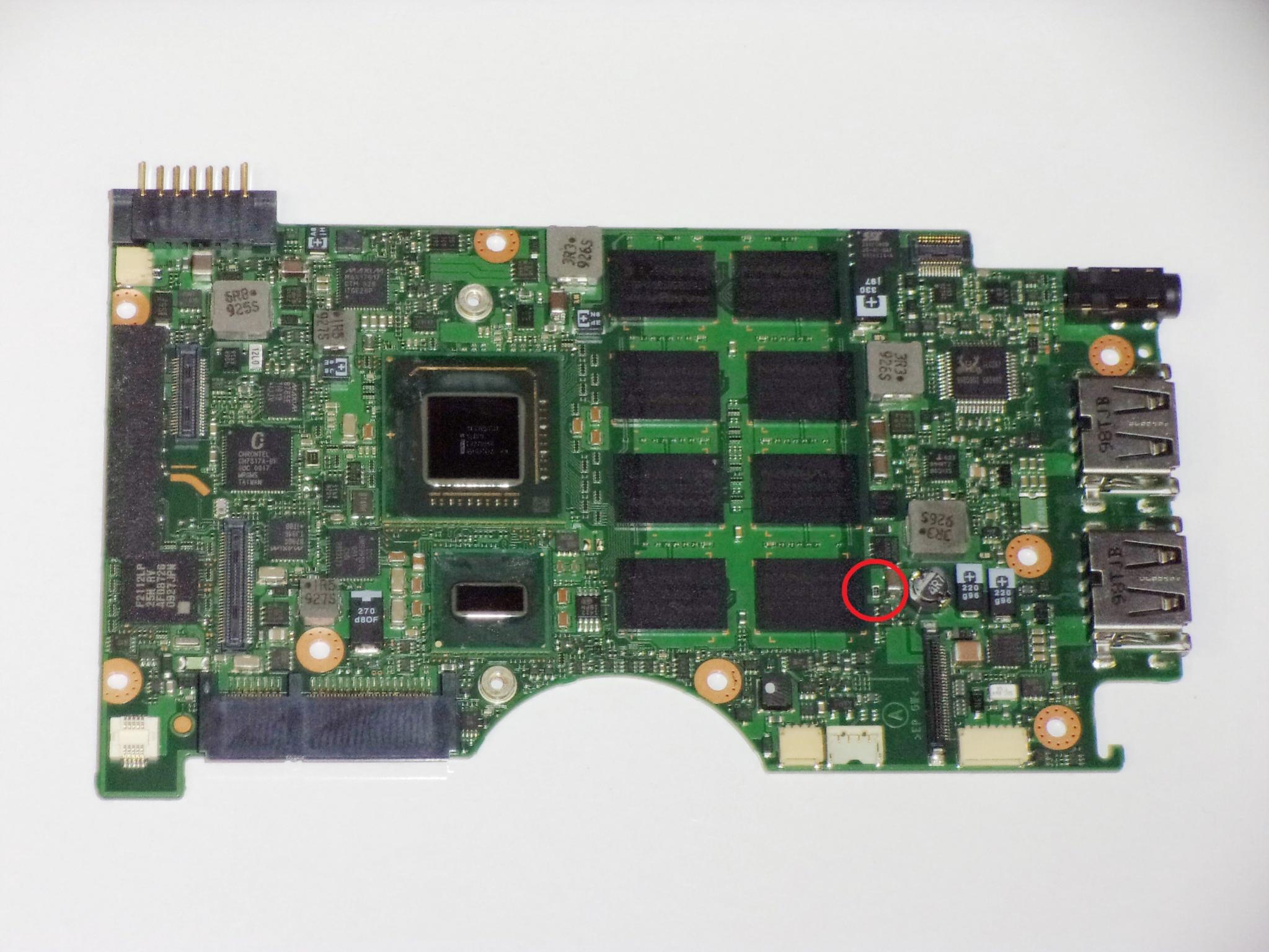 Having the same issue with a Toshiba Portege Z935-ST2N01. Can you please help me. As is evident from the pic, I tried to bridge the one labeled N near the video connector, but it did nothing. I tried the one next to the N as well. Rather than sitting here risking damaging the board further I thought I'd ask. It does output video to an external monitor. Screen works fine when tested in another laptop, so I can rule that out as well. It has to be on the board, I just can't find it. Help? Thanks for your time -