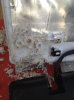 Since it appears that you are missing two of the threaded inserts that the screw threads into for fastening the hinge to the top cover; you will either need to locate the threaded inserts (not sure of a source) or purchase a used cover with the threaded inserts intact and swap it over.