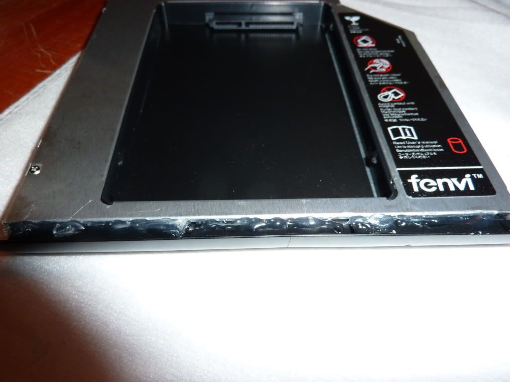 Make sure that no glue is on the top / bottom / side of the caddy or it will be difficult to seat inside the computer.