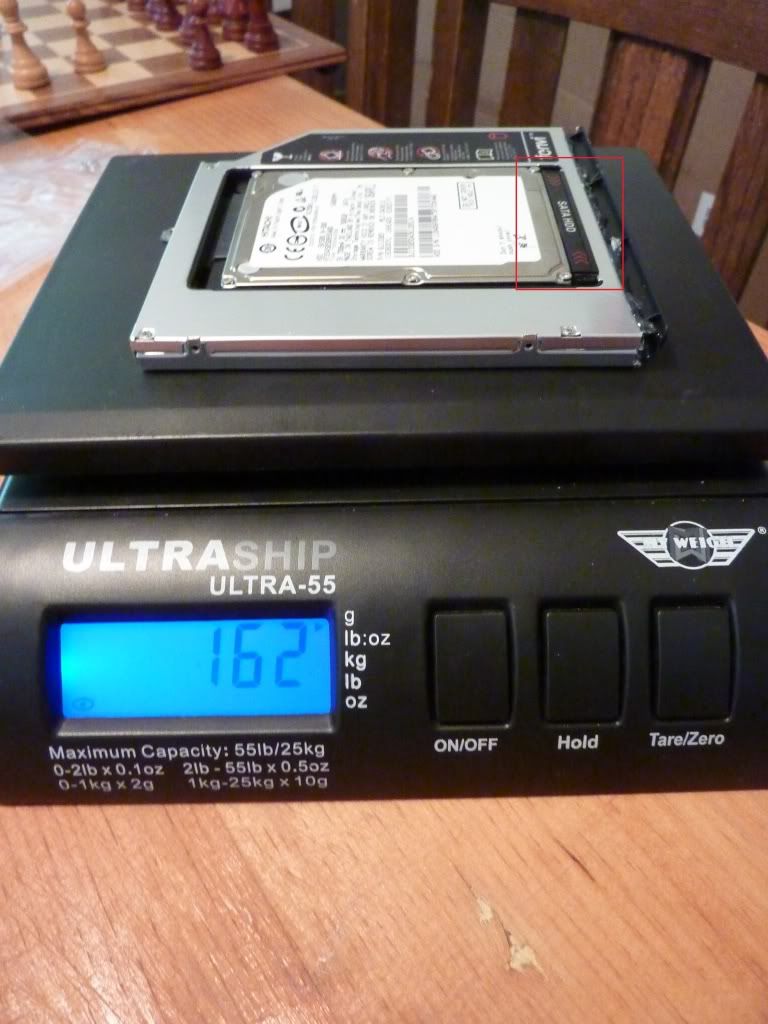 So, for those concerned about adding weight I did some comparisons between the caddy, optical drive and caddy with hard drive.