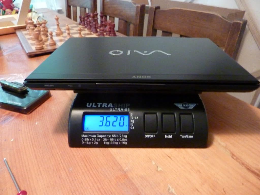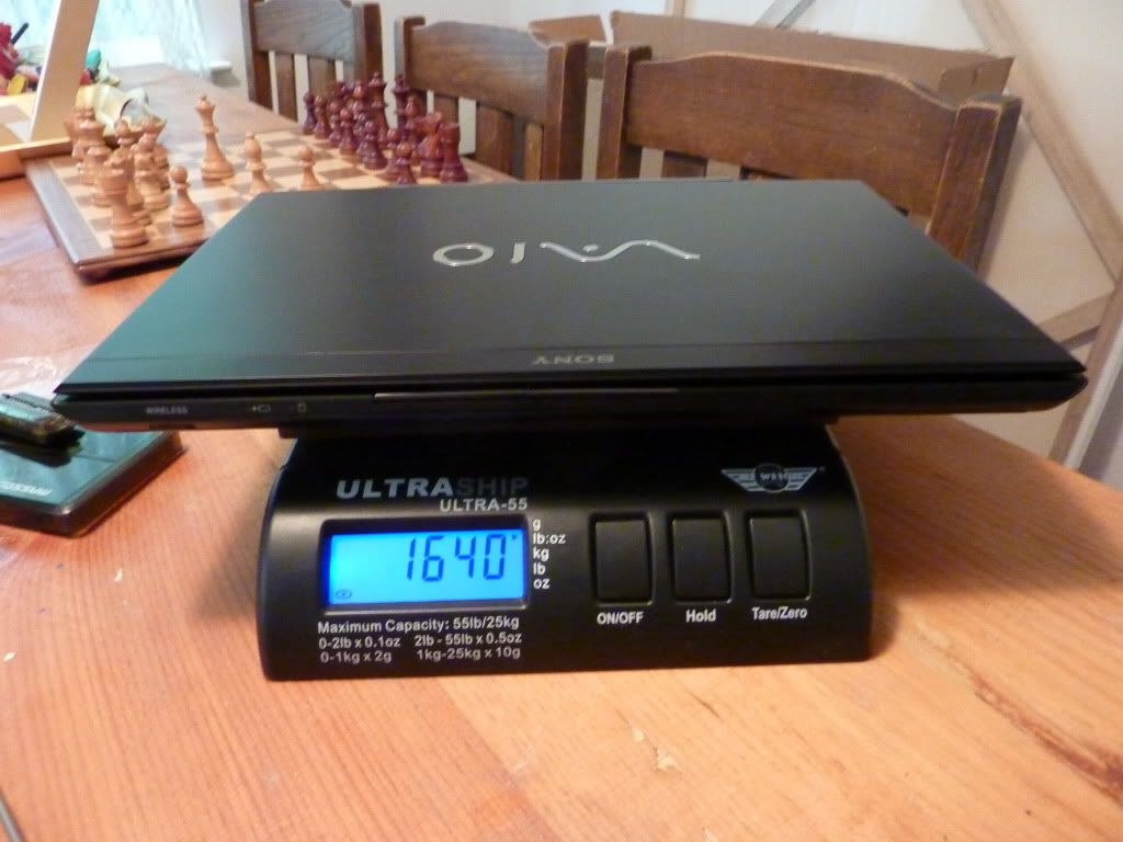 Vaio SA with the caddy installed. Weight 3.62 Lbs or 1.64 Kg.