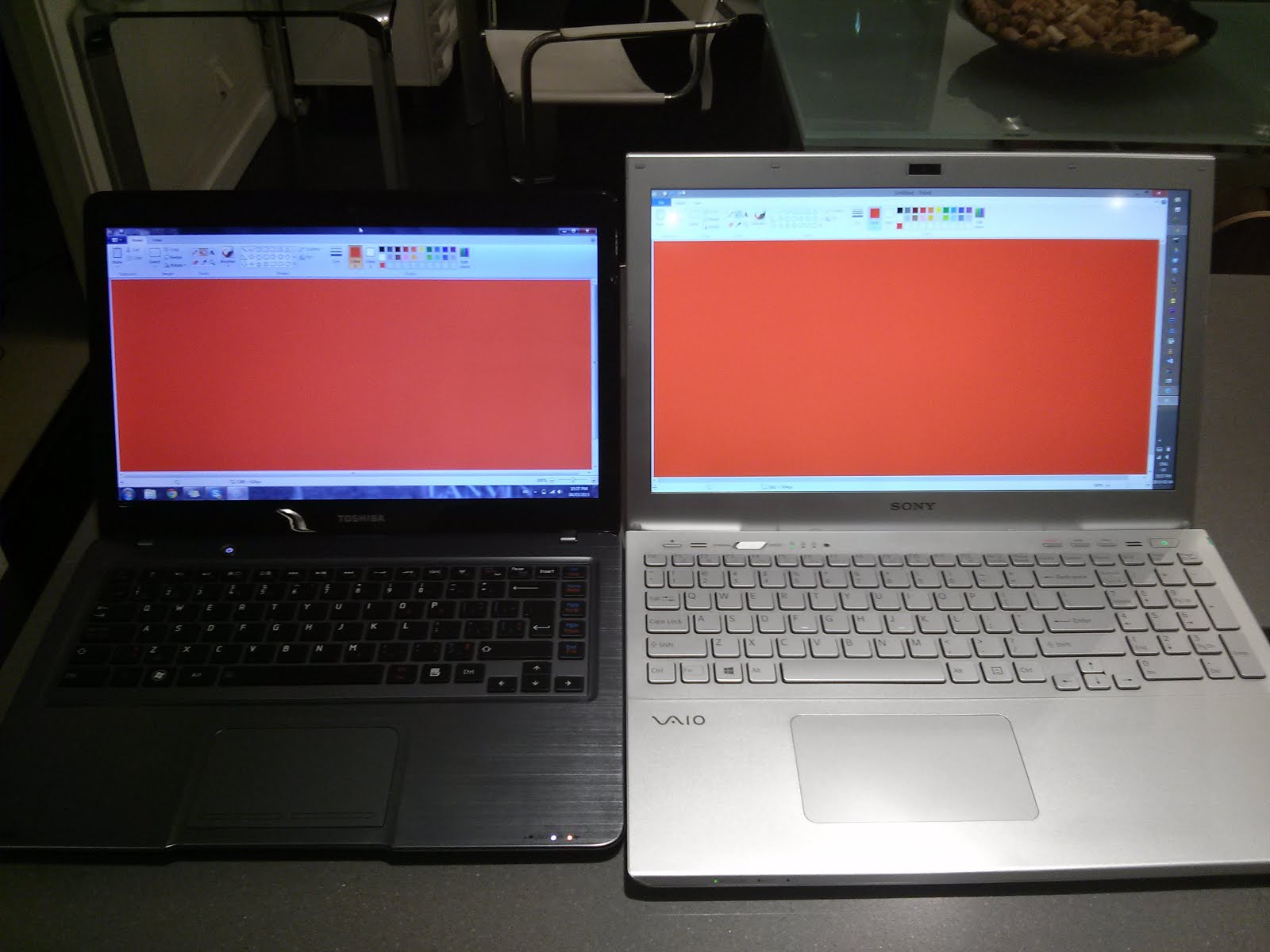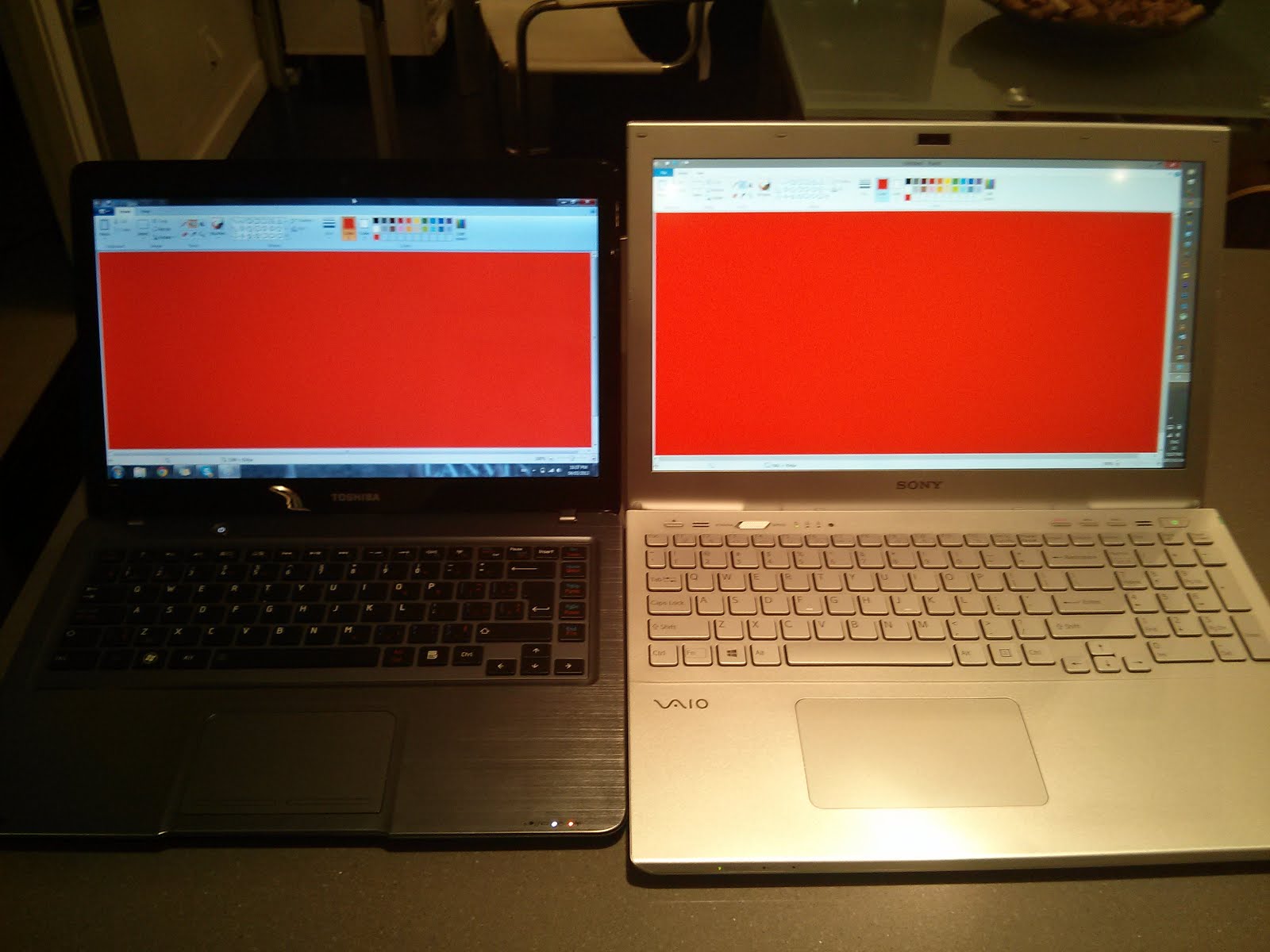 The point is that the original or calibrated color profile would give a much better understanding of color gamut that any side-by-side pictures. At least, it will show that the matix in this laptop is the same as in envy, previous Sony S models and some lenovo models.