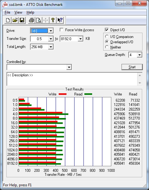 If the transfer size is larger or equal 4KB, you get allmost >400MB/s write and ~500MB/s read transfer speed.Attached Files: