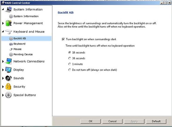 HOWEVER, isn't it odd that in the VAIO Service Centre software I no longer have any option to change settings for the "Backlit KB"?