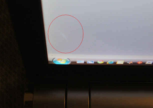 Check out the attached picture. This was obvious to me, with full screen brightness, and looking at the screen from top to bottom at an angle. Anybody have this problem? Its like a sliver of brightness. Its the same type that would occur if you were to press the screen from the back.