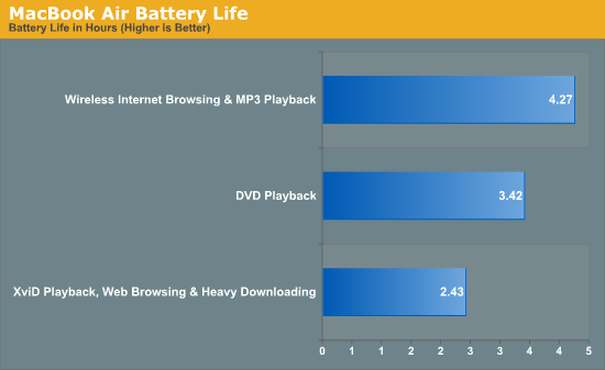 Why do you claim the air has crap battery life though? tests peg it at 4.3 hours on 50% LCD brightness, wireless on...that's about the same as Sony.... -