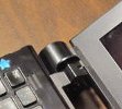 Then start rotating the keyboard while keeping it flat with the palm-rest part, in such a way as to allow the 1/4 circle shaped keyboard ribbon cable to back out of the slot it's threaded into without damaging the cable.