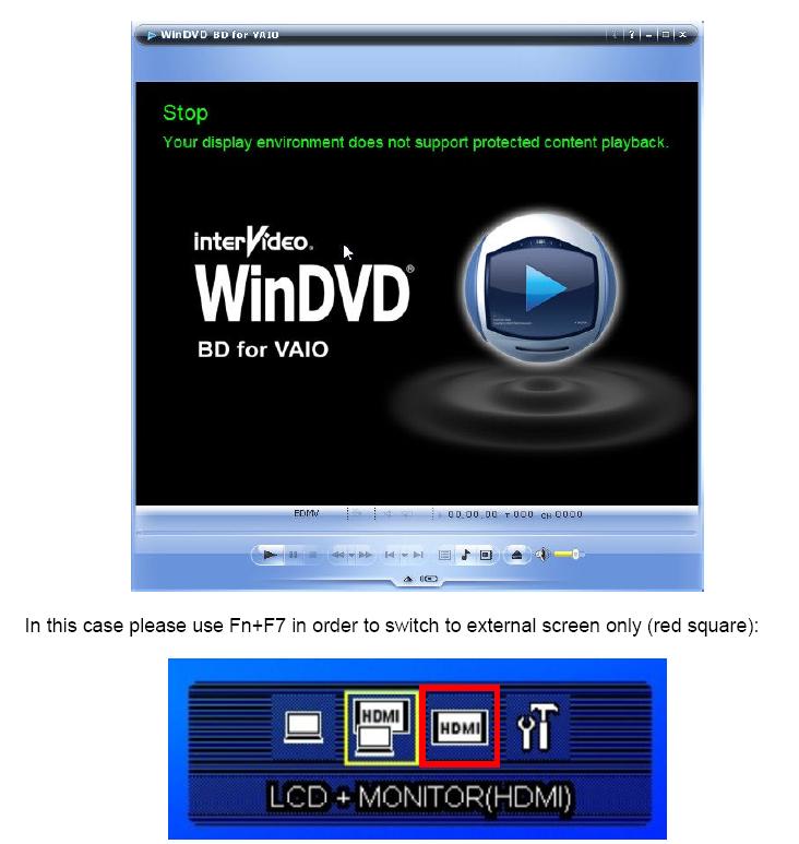 I get this error when I try to play a BD from my FZ348B with Blu-Ray drive, hooked up to HDTV via HDMI. BD play okay on laptop but I get the error as soon as I plug in HDMI cable. Plays regular dvds on HDTV okay. Not sure this BD drive is ready for prime time. Any thpughts?