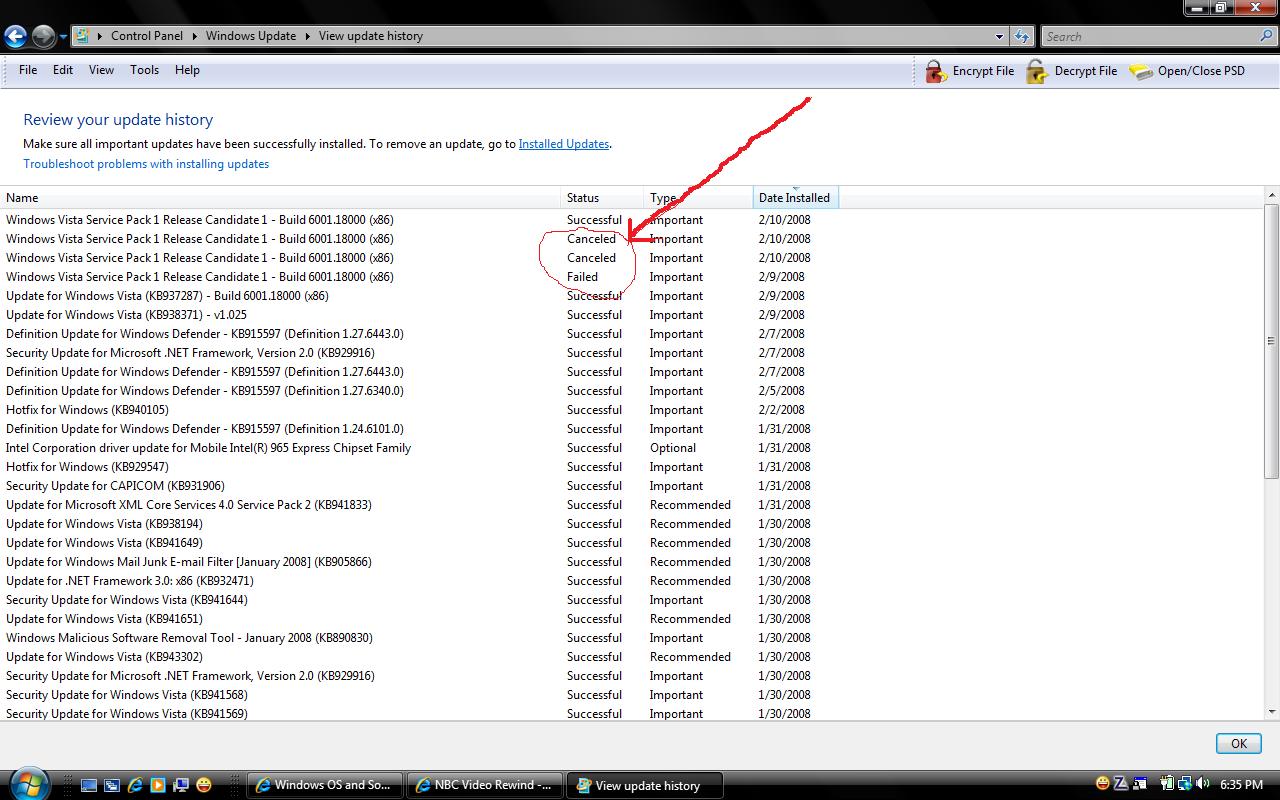 2. When I look at my installed updates, there are few cancelled ones. Should they be there ????Attached Files: