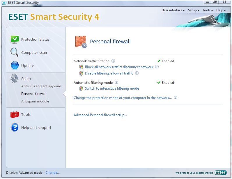 Update: the problem has gone away. Do I have to keep it on Automatic Filtering Mode in my personal firewall settings?