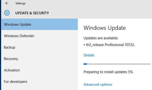 Windows 10 Insider Preview build th2_release Professional 10532.